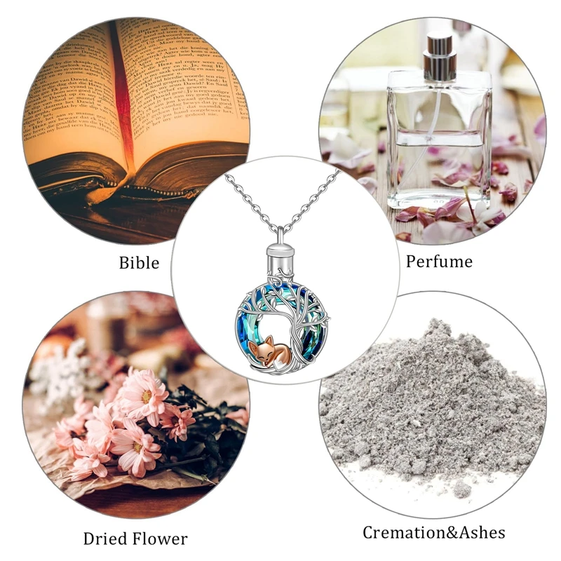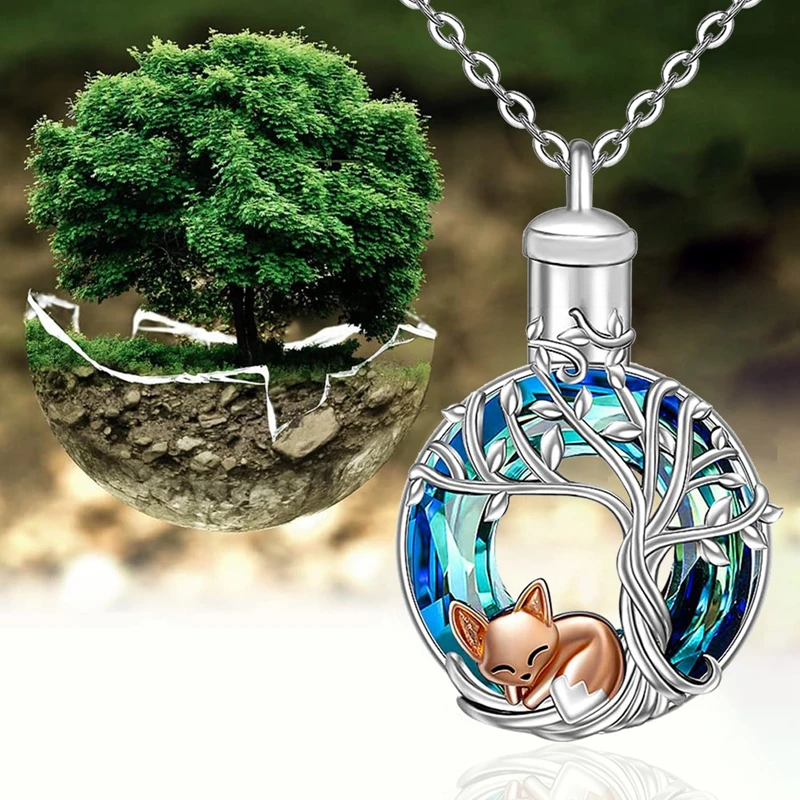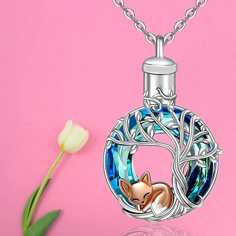 Lovely Fox Crystal Cremation Ash Urn Tree Of Life Pendants Necklace For Women Jewelry Gifts